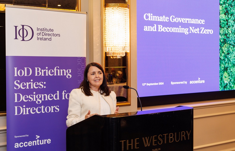 Last evening, the Institute of Directors (IoD) Ireland hosted a highly anticipated briefing on climate governance and sustainability at The Westbury Hotel in Dublin. The event, part of the IoD Briefing Series and sponsored by Accenture, focused on enhancing understanding of the environmental component of ESG (Environmental, Social, and Governance) with a special emphasis on the duties and responsibilities of boards in addressing climate-related challenges.